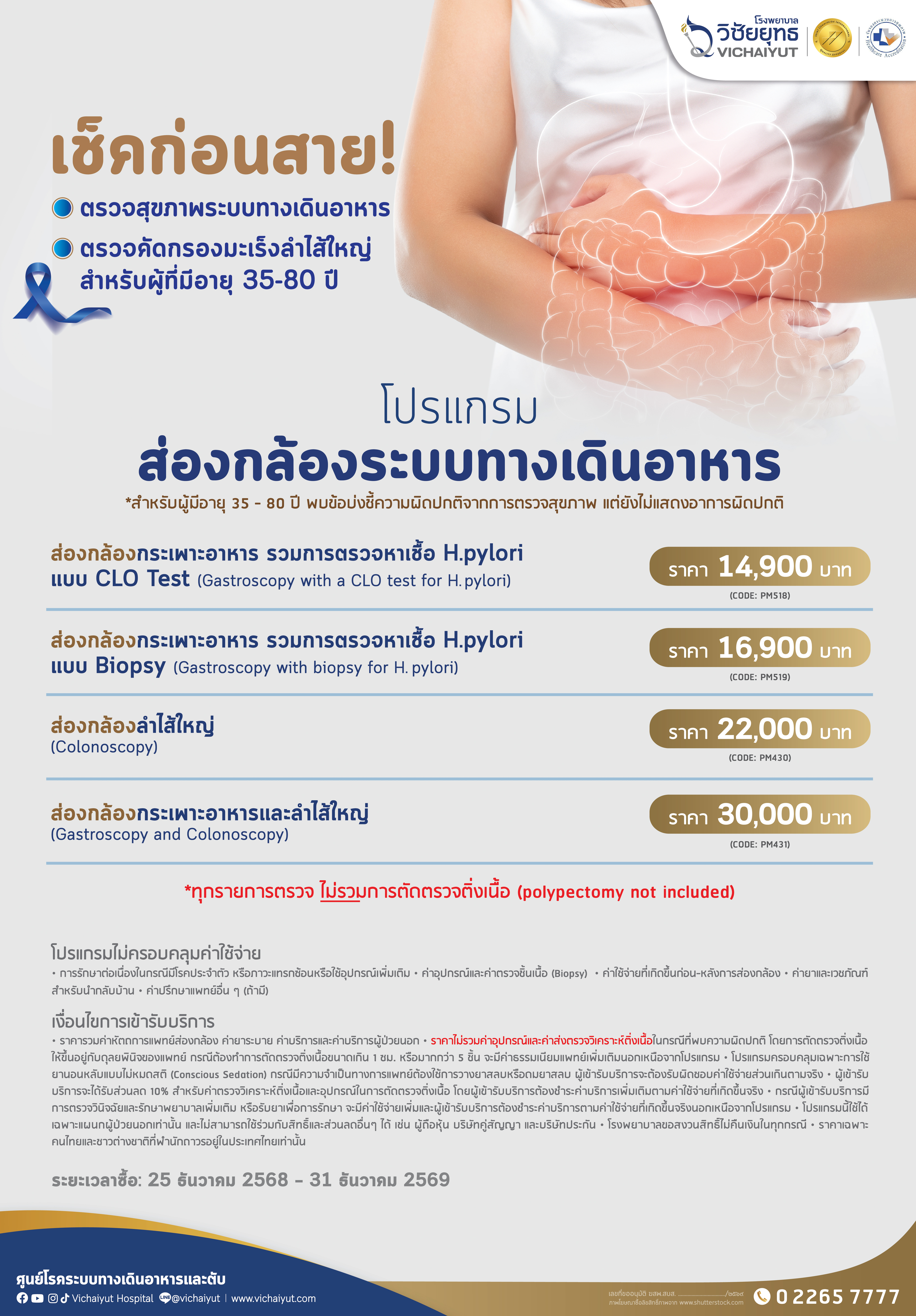 โปรแกรมส่องกล้องระบบทางเดินอาหาร ส่วนกระเพาะอาหารและลำไส้ใหญ่ (Gastro & Colonoscopy)