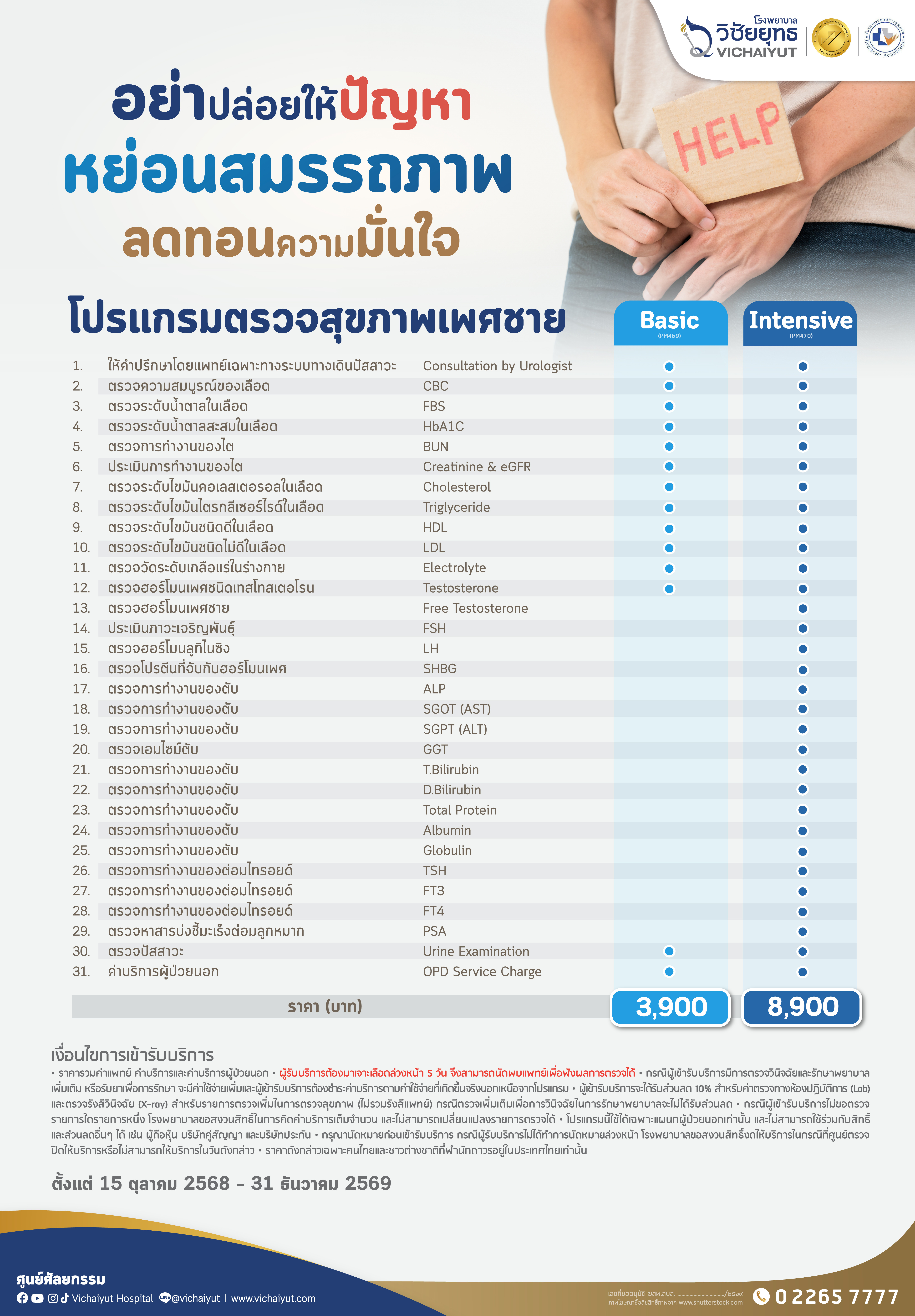 โปรแกรมตรวจสุขภาพเพศชาย Basic