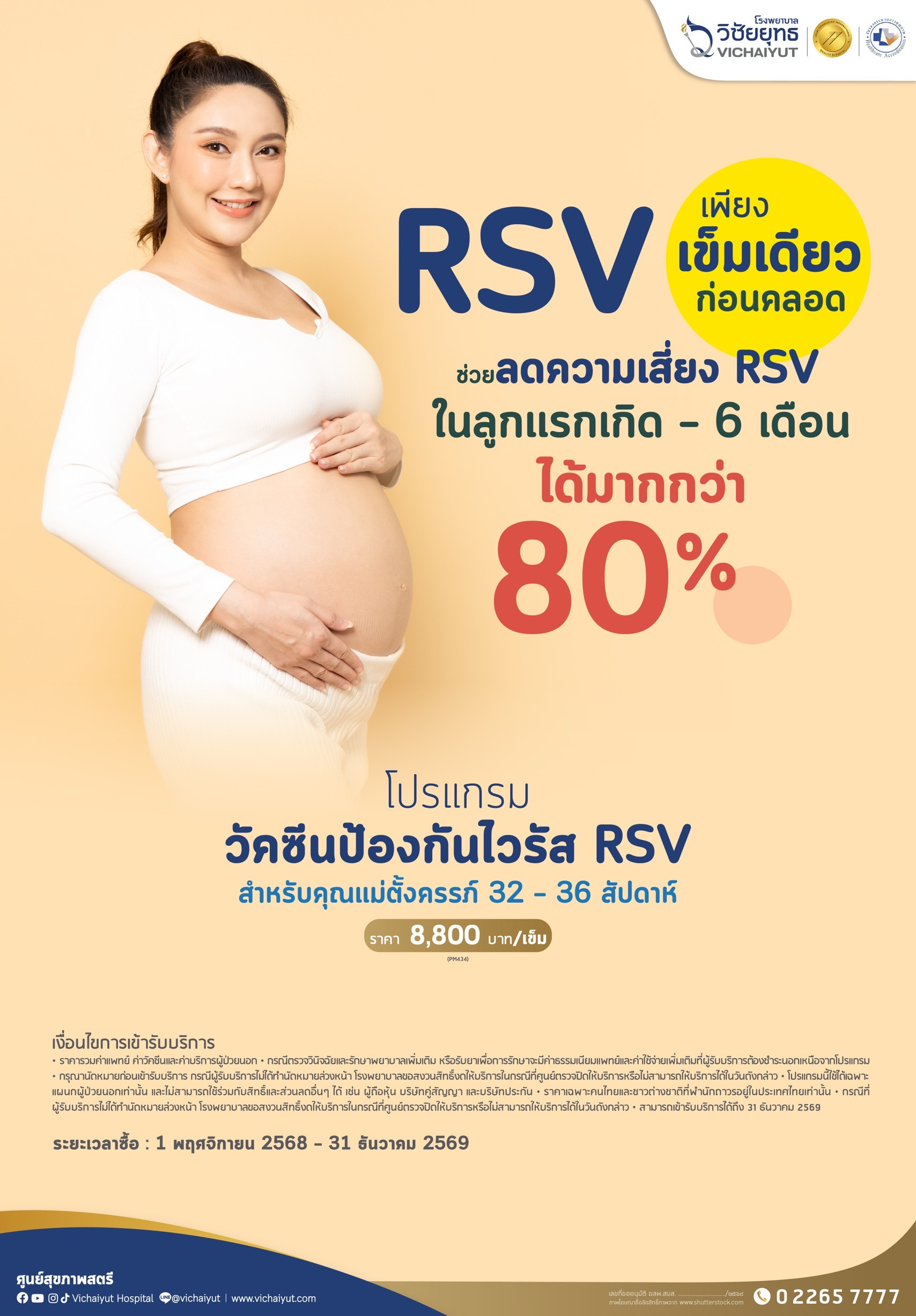 เงื่อนไขการเข้ารับบริการ• การรับวัคซีนป้องกันไวรัส RSV แนะนำสำหรับสำหรับคุณแม่ตั้งครรภ์ 32-36 สัปดาห์