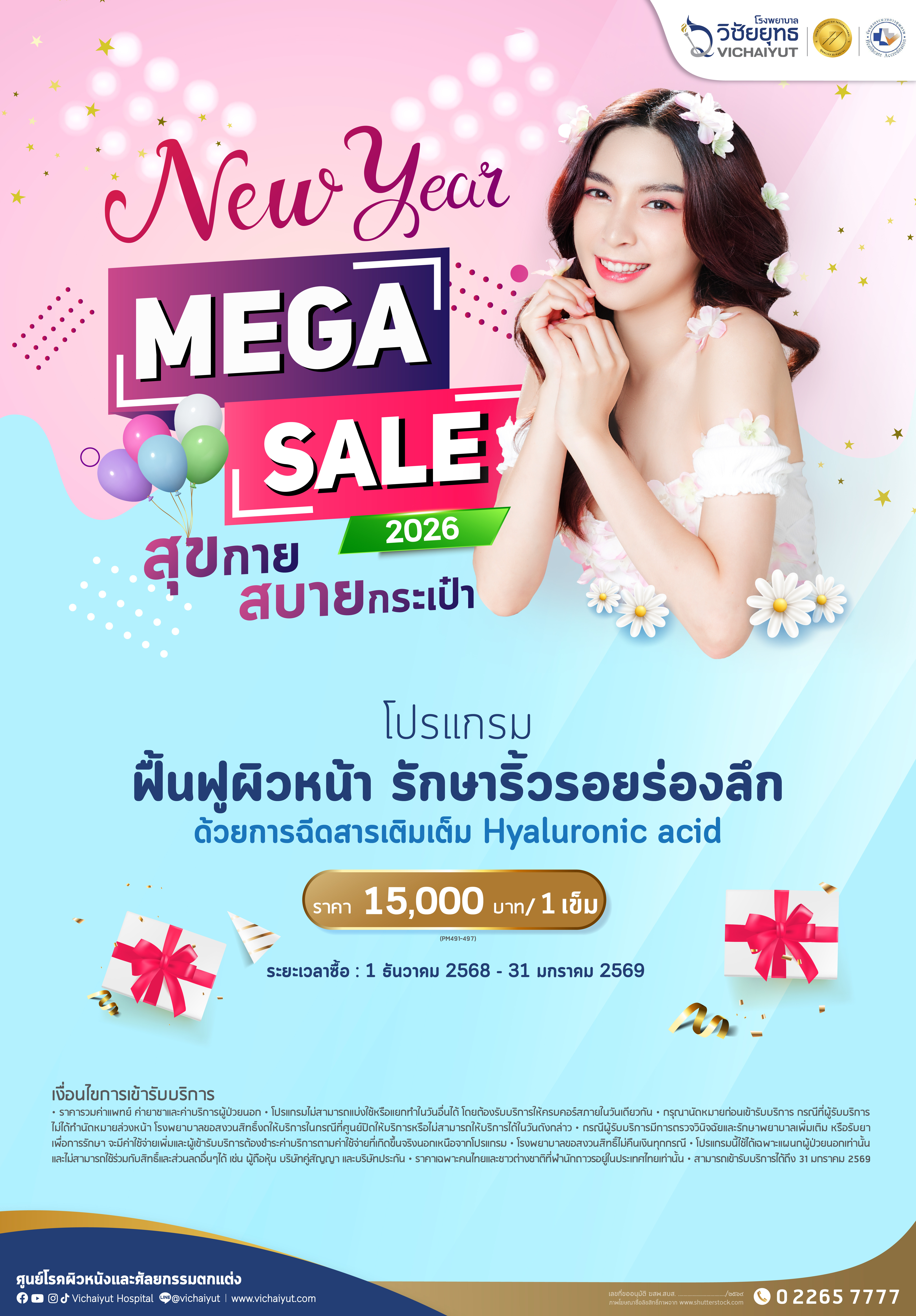 โปรแกรมรักษาริ้วรอยร่องลึก ด้วยการฉีดสารเติมเต็ม Hyaluronic acid จำนวน 1 เข็ม