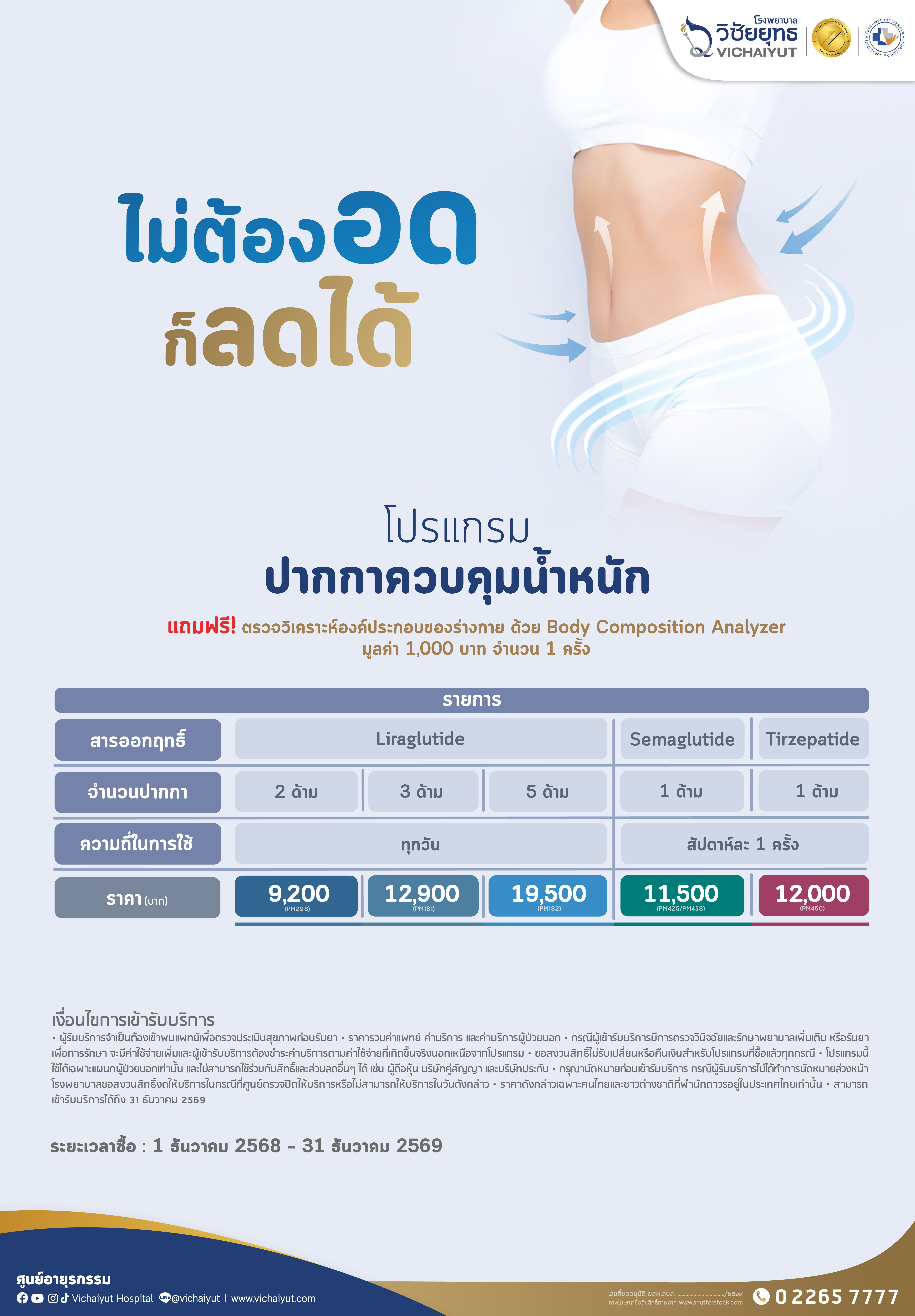 • โรงพยาบาลไม่สามารถจัดส่งปากกาควบคุมน้ำหนักให้ทางไปรษณีย์หรือบริการขนส่งใด ๆ ได้ ผู้ซื้อจะต้องเข้ารับการประเมินสุขภาพโดยแพทย์ ณ โรงพยาบาลก่อน จึงจะสามารถรับปากกาควบคุมน้ำหนักกลับไปฉีดที่บ้านได้